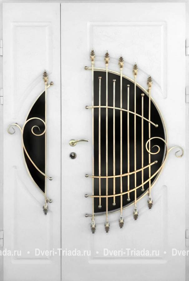 Металлическая полуторная термодверь с ковкой и стеклом (МДФ белого цвета) Арт-587